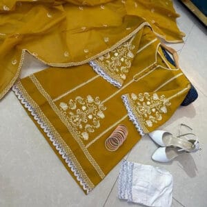 Luxury Pearl Embroidered Chiffon Long Maxi 3PC Suit with Lace Dupatta – Elegant Party & Wedding Wear